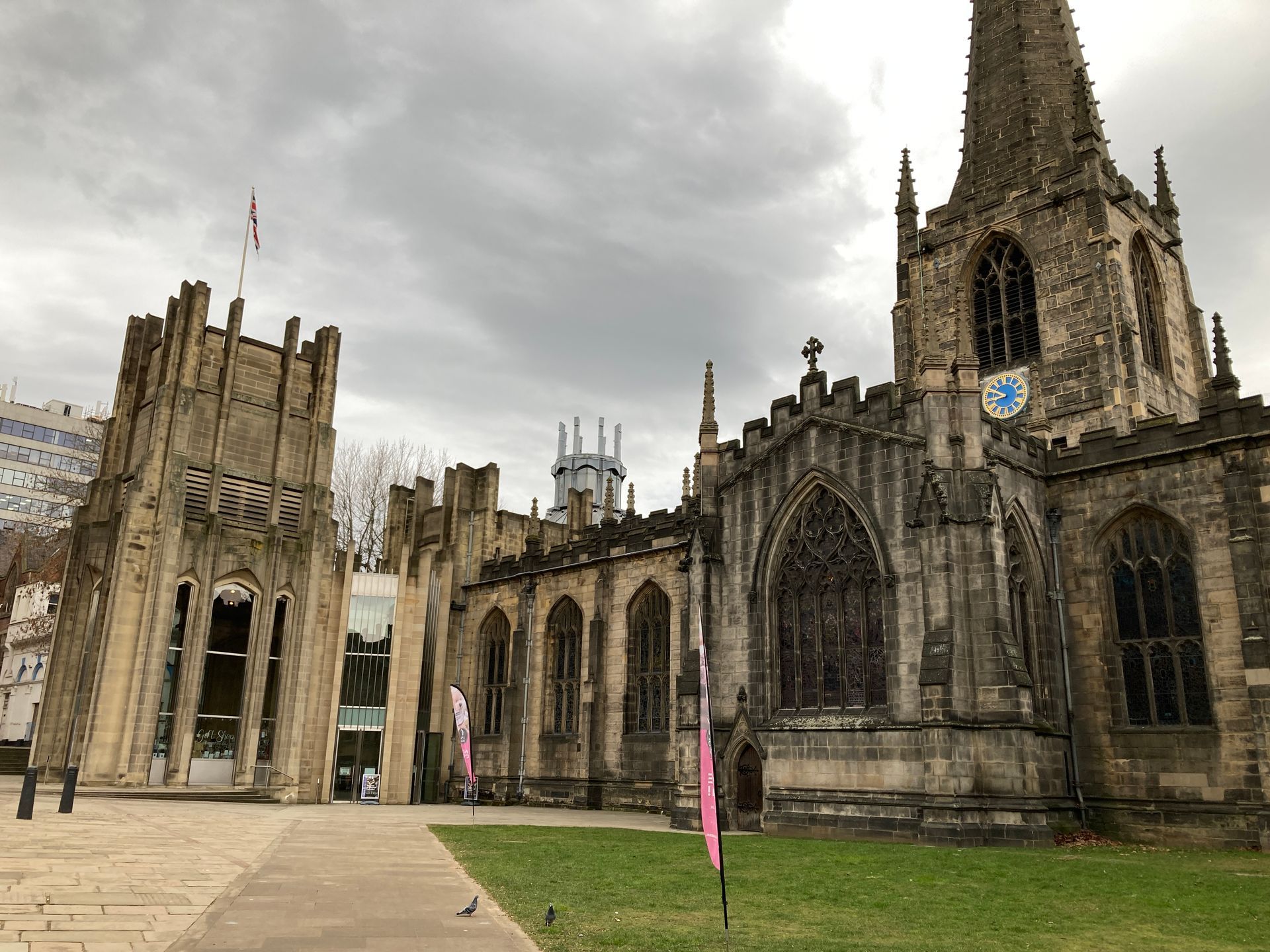 After Mass we started the walk and passed the building at the top of Norfolk Row that had housed Georgian Goldsmiths where my wedding ring was purchased in 1979. The walk through the centre was a little disappointing with little sign of the splendid shops that once filled it (likely due to Meadowhall). No 'Hole in the Road' anymore: where ever do people meet each other now without the 'fishtank'? We called at The Anglican Cathedral hoping to obtain a stamp for our Pilgrim passport but this was kept in the shop which, being Sunday, was not yet open.