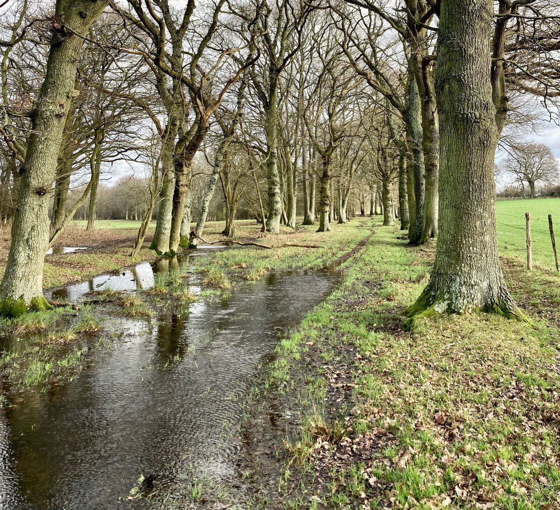 The Way is on quiet lanes and farm tracks. It may be muddy in places. Dial Post has a pub, the Crown Inn which also provides accommodation. There is a bus stop.
