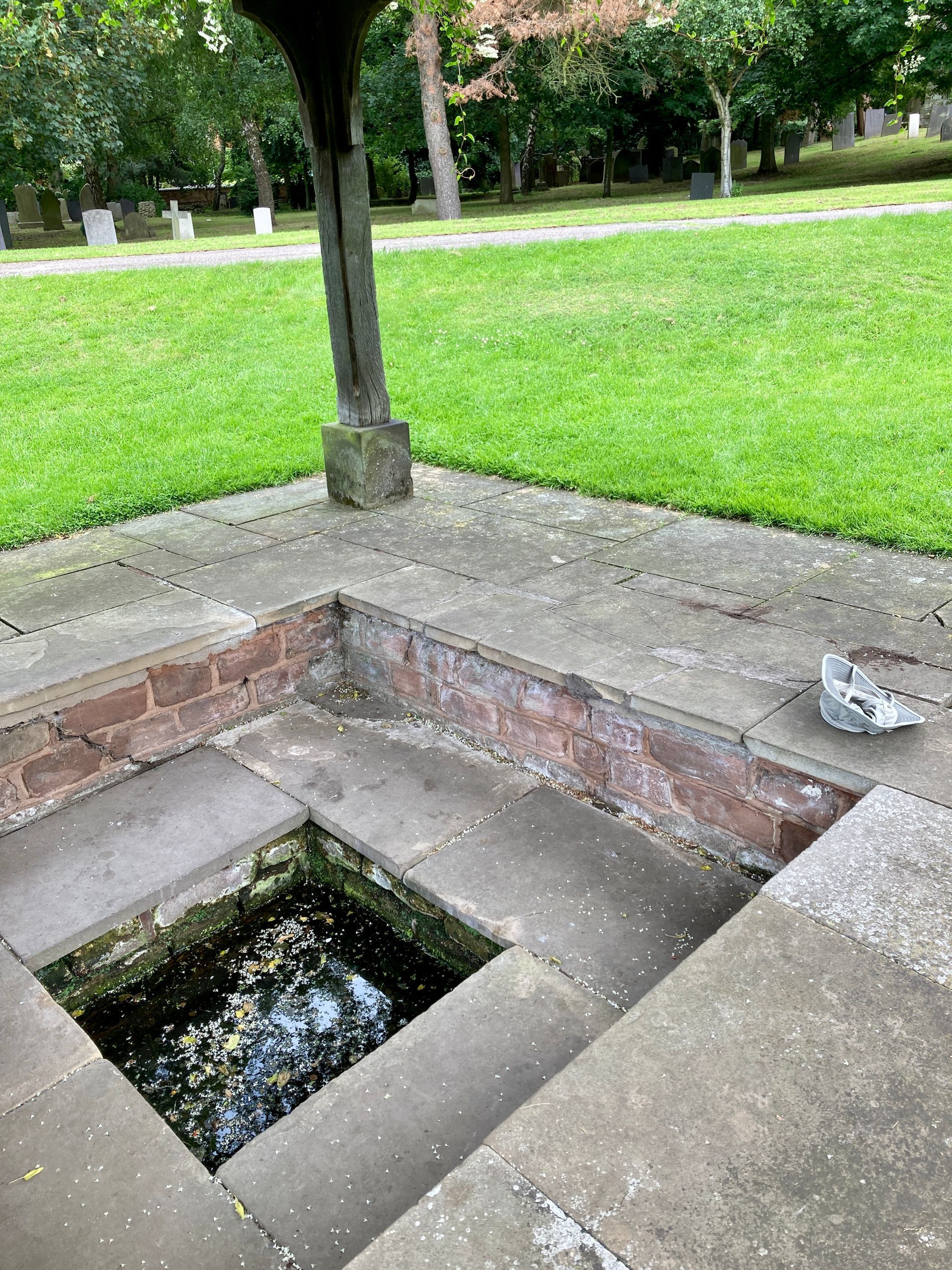 According to Bede, Chad prayed naked at this Well, and used the water to baptise converts. It became a place of pilgrimage and tradition indicates that water from the Well had healing powers. Well Dressing was carried out in the C19 on Ascension Day. Pitt’s 1817 History of Staffordshire claimed that this practice dated back to ‘times of Popery’. In 1995 Well Dressing was revived at St Chad’s. There is an annual service when water from the Well is blessed and sprinkled on the congregation using a branch of yew.