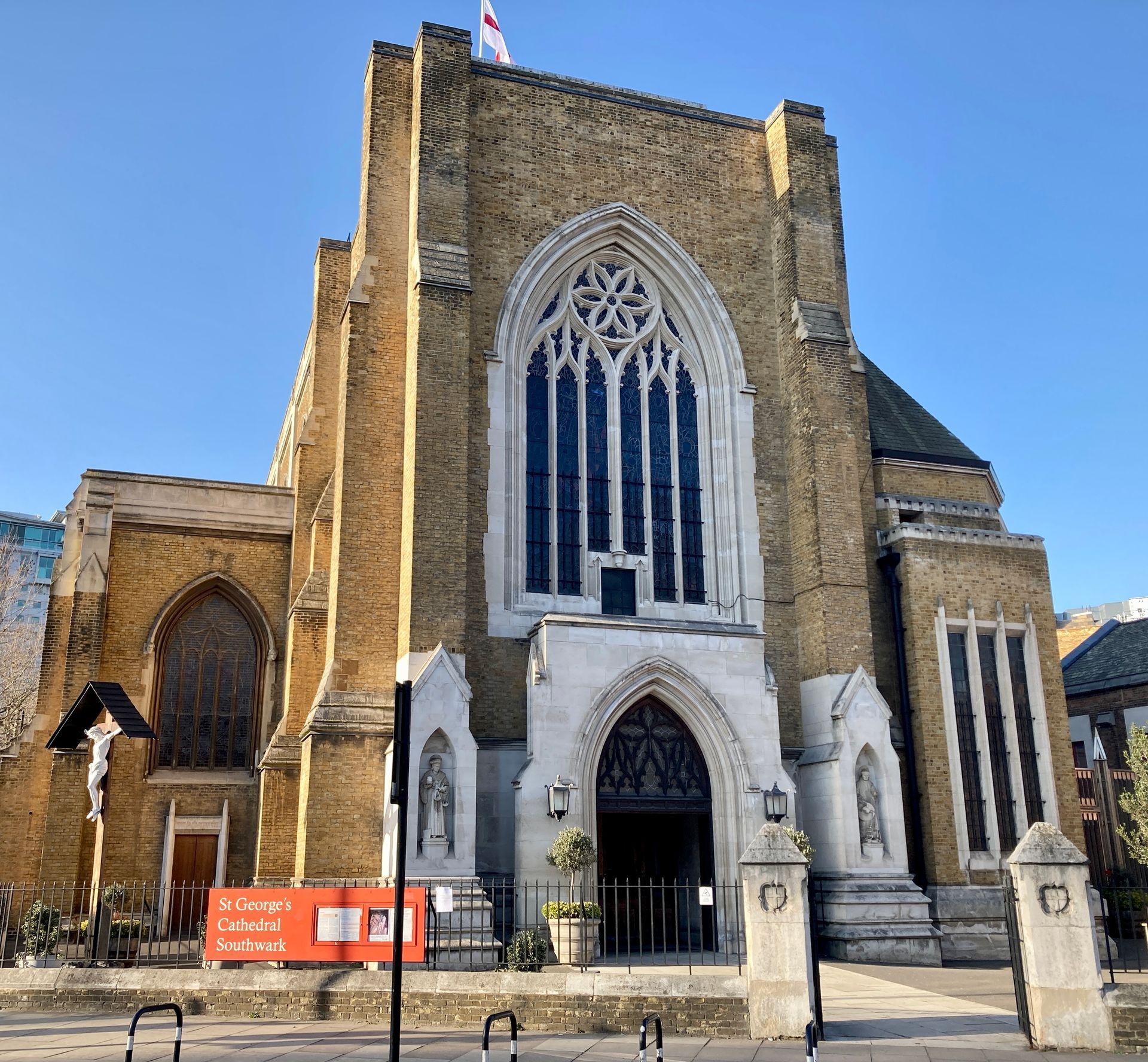 By the early 1970s St George's was not needed by the Anglican chaplaincies and the number of Catholic soldiers was increasing, so in 1973 the church became the seat of the Catholic Bishop of the Forces and was dedicated to SS Michael & George. The Blessed Sacrament Chapel was constructed in 1998. In 2015 a crucifix made from the parts of 23 aircraft from the 1930s to the present was blessed and dedicated in the cathedral as a link to all who serve in the RAF.