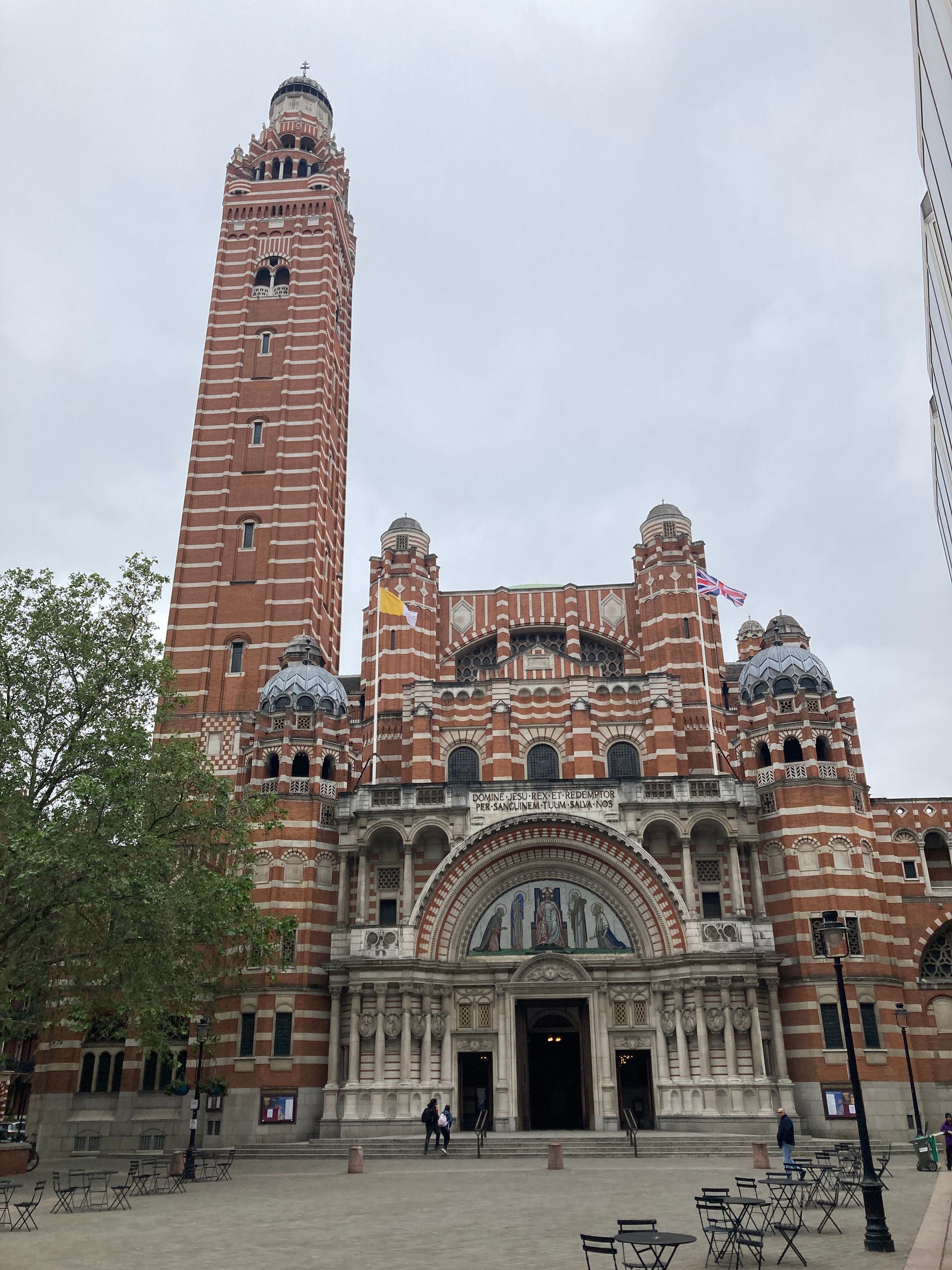 The building dominates the area, and the tall, slender campanile is a landmark for miles, and provides a stunning viewpoint. Since 1975, the west front has been open to view from Victoria Street across the piazza. The Cathedral is a busy inner-city community, and casual visitors mingle with daily mass goers as the liturgies progress through the day.