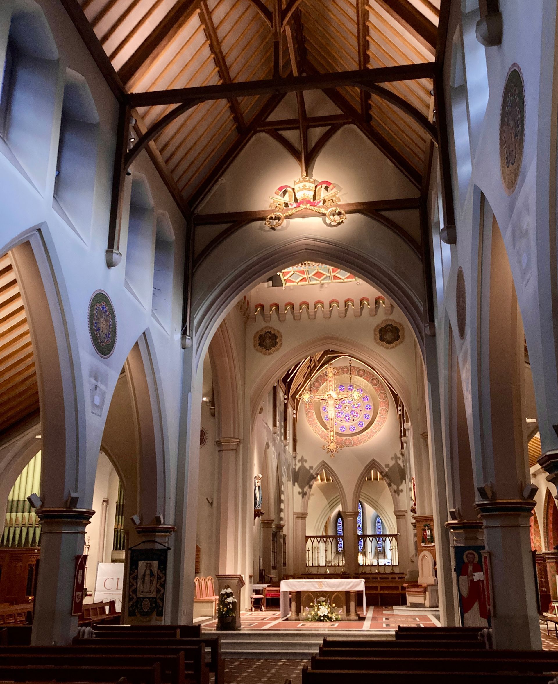 This is said to be the first Catholic church since the Reformation built on a cruciform plan, and one of the largest, most ambitious and impressive Catholic churches of its day. The building was inaugurated in 1844 and 6000 people are said to have attended the laying of the foundation stone. When it was opened in 1848 the service was attended by Catholics from all over the country, including eight English bishops. The various fixtures and fittings included a magnificent reredos and sanctuary furnishings.