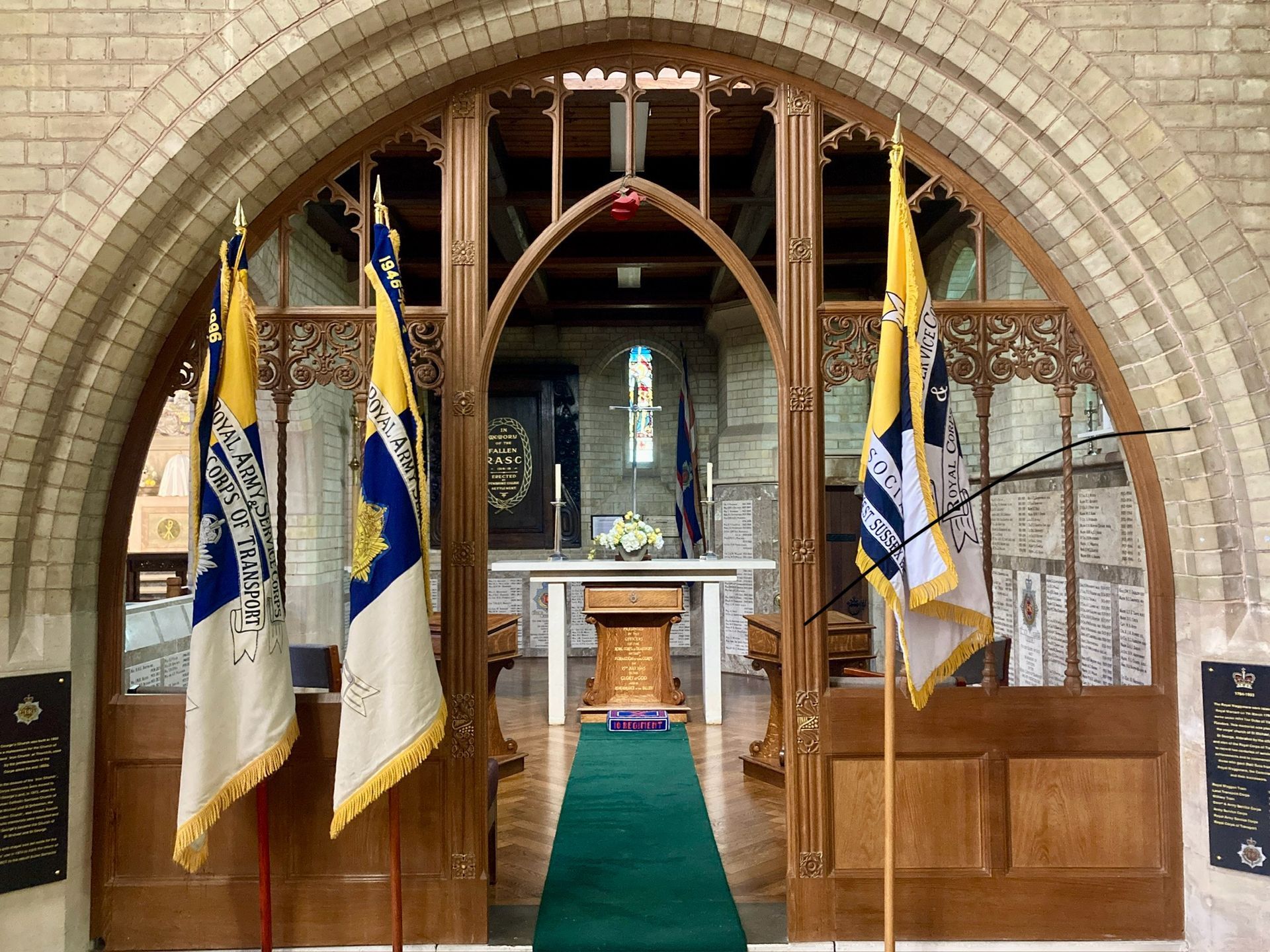 The Royal Army Service Corps holds a memorial service in the Cathedral each year and their Chapel of Remembrance is to the south of the Sanctuary.