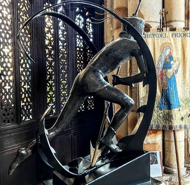 Arriving from several parts of the States, we gathered in late July at Paddington Station. Enroute to St. Bees, our family stopped at Workington in West Cumbria to meet Fr. Philip and Canon John Watson. After Saturday Vigil Mass, we dined with our welcoming priests and received a wonderful pilgrimage blessing beneath the statue celebrating St. Bega’s arrival on the coast of Cumbria in 650 AD.