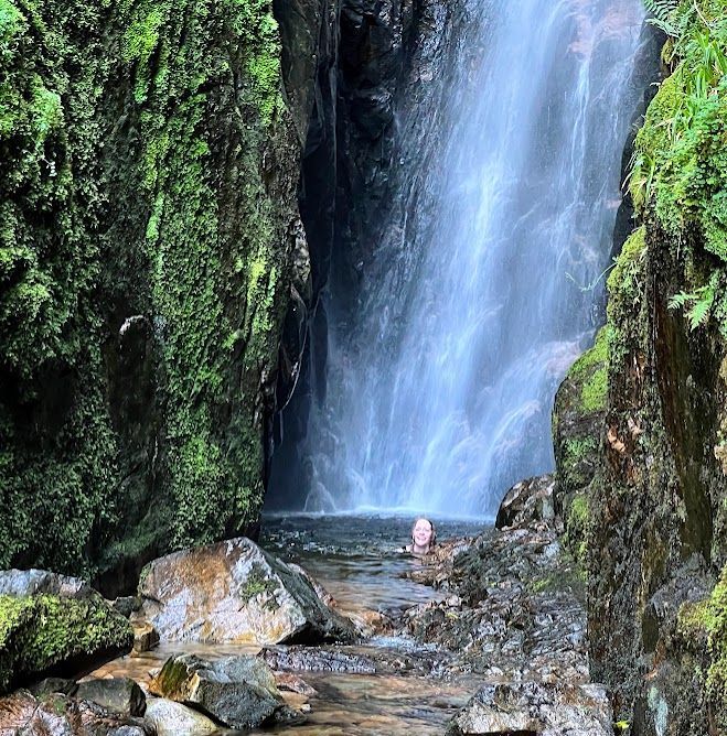 Over the course of the next two weeks, the four of us backpacked along St. Bega’s Way, St. Bega’s Way Back, St. Mary’s Way and the Cumbrian Cistercian Way. Our family traversed numerous fells and ghylls, crossed many becks and dived into multiple tarns. We climbed a total of 21,000 feet while walking 180 miles. We even kayaked to pray at the ruins of St. Herbert’s hermitage on his island in Derwentwater. Our outdoor specialty was wild swimming which sometimes received applause as we pursued group immersions in Ennerdale, Crummock Water, Scale Force Waterfall, Ritson Force, Angle Tarn and Colwith Force. This craving for cold water was reminiscent of baptism while mountain summits promised the protection of St. Michael, and the ospreys overhead suggested the guidance of the Holy Spirit. We revelled in the glory of God’s creation.