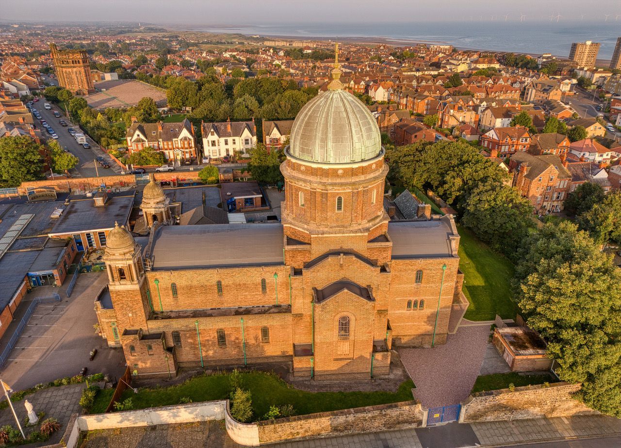In 1879 a room was rented in Egerton Street where Mass was said for Catholics of New Brighton. In 1881 a church dedicated to Ss Peter & Paul was opened and a school was erected close by. In 1909 Fr Thomas Mullins was appointed rector. His vision was to build a great church that would serve as a beacon for Catholicism far and wide. In the early C20 New Brighton was a rapidly growing seaside resort and a commuter suburb for Liverpool. The site selected was in Atherton Street at the top of St George’s Mount, the highest point of New Brighton. The church opened in August 1935. It is monumental in scale and in the baroque style. The 85’ diameter dome is nicknamed "The Dome of Home" from when sailors would recognise that they were close to Merseyside when they could see it. Inside it is simply ornamented but the high altar and side chapels are clad in sumptuous marbles. In 2006 the church was threatened with closure, a prospect that met with local opposition and led to a successful application for it to be listed. In 2008 the diocese agreed to lease the church to the Institute of Christ the King, a society dedicated to the celebration of the pre-1962 Latin Mass.