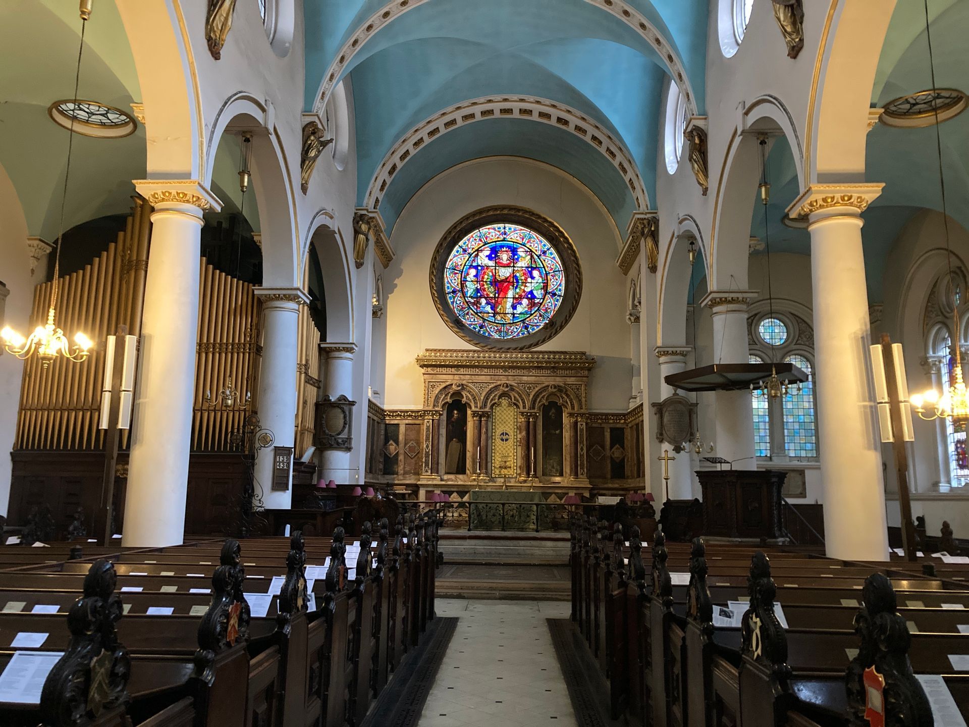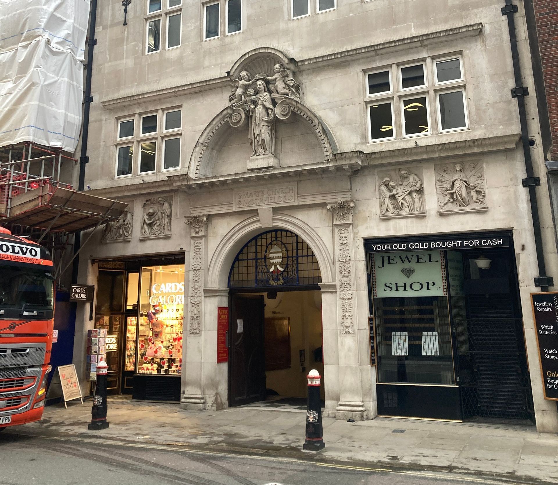 Participants met at the Church of St Mary Moorfield, 4/5 Eldon Street, in the City of London. The City is the square mile inside the ancient Roman walls of Londinium. It is a city, ceremonial county and local government district with its own Lord Mayor, Corporation and police force. During the Nineteenth Century it was the centre of global trade. In 2022 London came second after New York in the Global Financial Centres Index. Before the Great Fire of 1666, there were over 100 churches in the City. By the start of World War Two there were just under 50, half of which were badly damaged by bombing, 5 beyond repair. By the late 1960s after restoration and rebuilding there were 39 Anglican churches in good condition. Some are now redundant or used for other purposes. There is only one Catholic church in the square mile, and our pilgrimage started there.